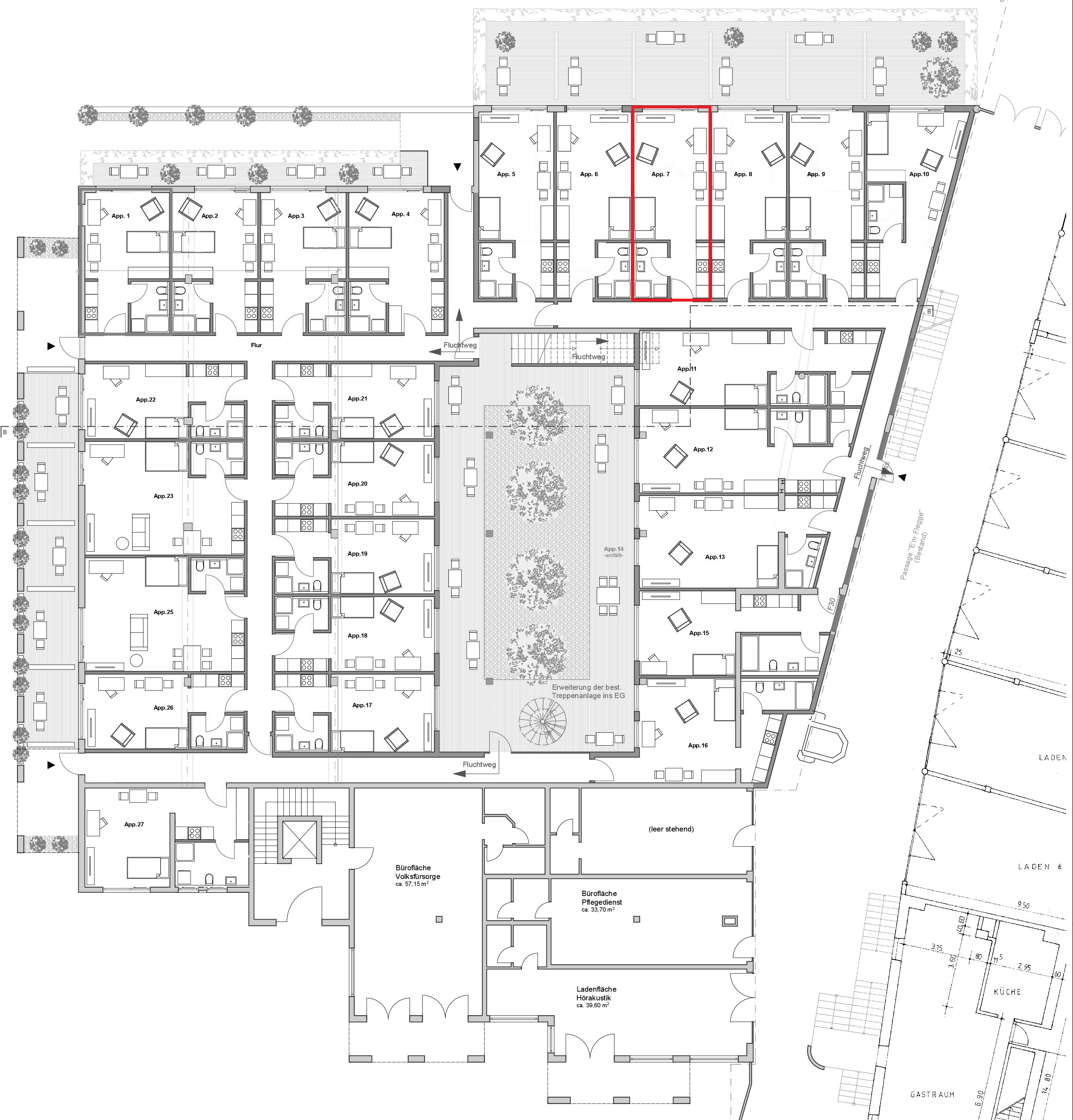 Apartments mit ca. 40 m²Finden und gestalten Sie Ihr individuelles Reich! Alle unsere Apartments sind Parterrewohnungen und barrierefrei gebaut. Durch die ebenerdige Lage können wir Ihnen die Möglichkeiten bieten über einen Außenbereich zu verfügen. Informationen zu den Appartements sowie deren Verfügbarkeit und Lage können Sie der untenstehenden Tabelle entnehmen. Sie haben ein Apartment gefunden, dass Ihnen gefällt? Wir freuen uns von Ihnen zu hören!